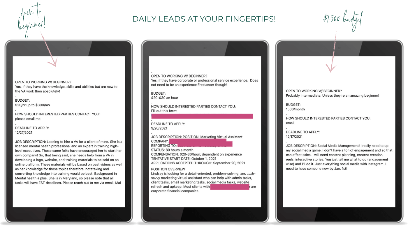 In addition to the trainings, templates, weekly live coaching calls, monthly challenges, job leads, and student community connection you can instantly access, I am always here if you need additional 1:1 support.